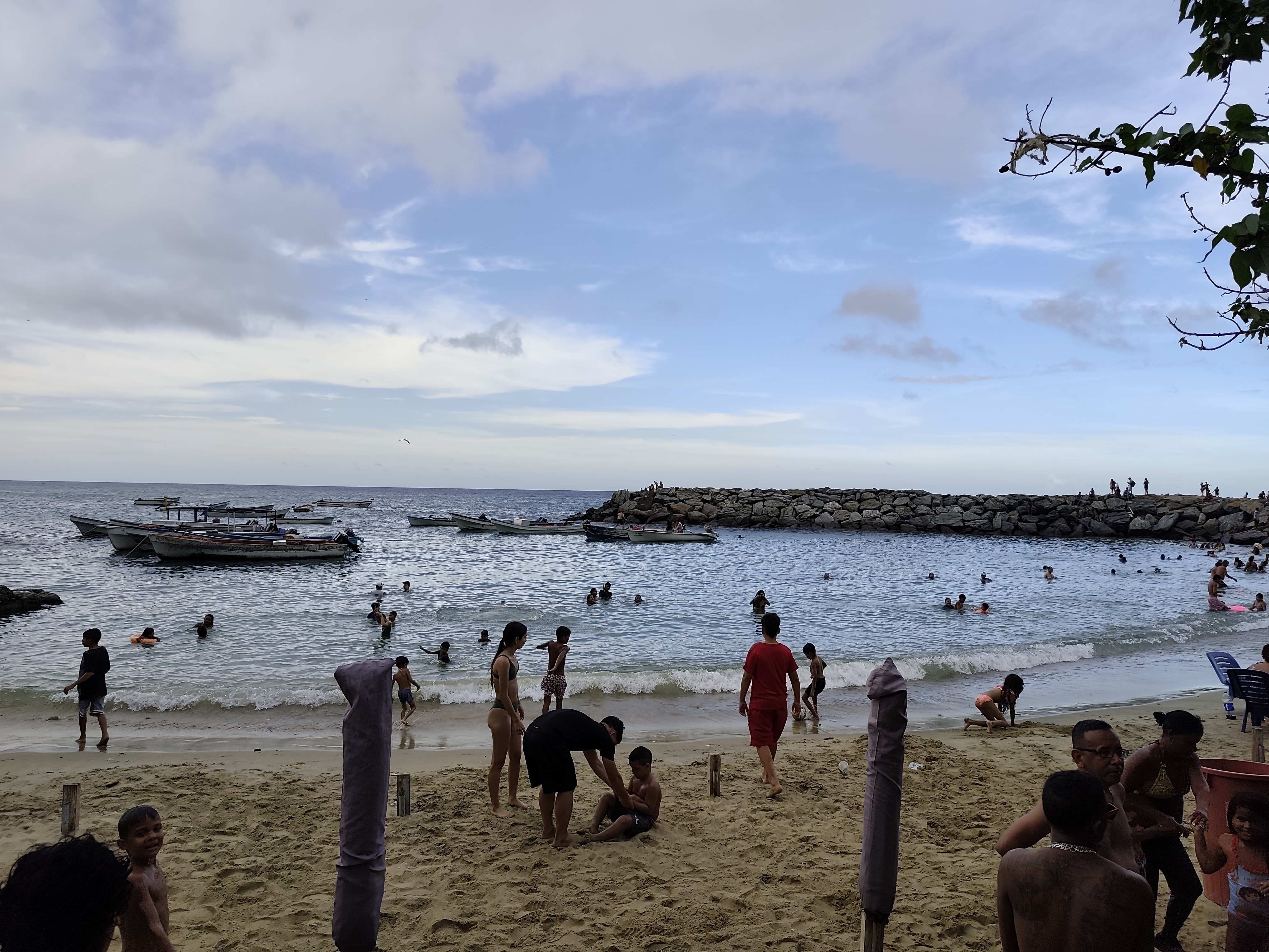 A la tarda vam passejar pel Passeig Marítim de Macuto, on vam poder veure les obres d’un edifici històric a primera línia de mar. S’està rehabilitant per a esdevenir un hostal gestionat per la Comuna. Aquest va ser el projecte guanyador de la tercera CPN i avui ja està en obres i serà una realitat en pocs mesos. Passejant pel costat de la platja ens trobarem un poble gaudint del seu mar un diumenge qualsevol. Canalla jugant a l’aigua i a la sorra, joves passant una jornada sota al sol amb amics i amigues, famílies i grups d’amics sota l’ombra dels arbres fent picnics domingueros. La vida de les veneçolanes segueix amb tota la normalitat i la quotidianitat. A les platges de Macuto ens vam topa amb la dignitat d’un poble que vol pau i que per això afronta totes les amenaces imperialistes mantenint les seves rutines. Elles posen vida allà on alguns hi volen guerra.