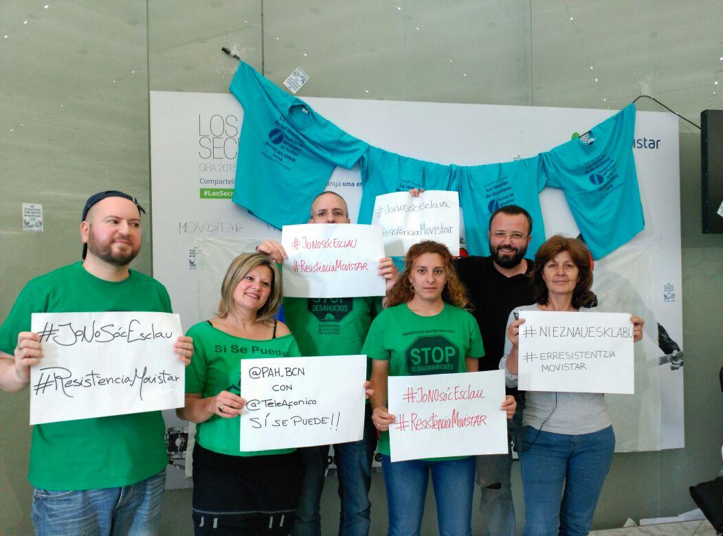 La voluntat és romandre fins assolir un acord amb l’empresa. D’aquí que l’organització d’ #OccupyMovistar gestioni activitats per ocupar tot el dia i seguir sumant suports populars de lluites, alcaldables i solidàries en general. El matí de diumenge va transcórrer amb una peculiar ‘ressaca’ després d’haver superat la primera nit i tenir per davant tot un dia gens normal: unes eleccions municipals que auguraven un canvi important a l’ajuntament.Al migdia, ja es va organitzar un dinar popular. Diverses actuacions musicals vam amenitzar la jornada, mentre que a mitja tarda van arribar els companys vaguistes de Bilbo, que s’hi van desplaçar expressament per donar suport. No debades, Barcelona està prenent un paper referencial en la vaga contra Movistar. Cal dir que l’empresa no va donar senyals de vida en cap moment del dia.Ja al vespre, una paella popular cuinada allí mateix i el seguiment electoral van ser les responsables de cloure la jornada. En aquest sentit, va ser nombrosa la xiulada contra Trias, en sortir per televisió, que es va convertir en aplaudiments quan va reconèixer que havia perdut. Qui es va endur aplaudiments i crits de suport van ser les candidatures de Barcelona en Comú i la CUP-Capgirem Barcelona. Cal recordar que són dues de les candidatures que a principis de setmana havien signat el ‘compromís de les escales‘.Per al dilluns 25, #OccupyMovistar ha organitzat tot un seguit d’activitats per omplir la jornada i facilitar que la gent s’hi solidaritzi activament. A més, també la gent també s’hi pot solidaritzar des de la distància, publicant fotos #JoNoSócEsclava, així com engruixint la caixa de resistència, clau per a la continuïtat de la vaga.